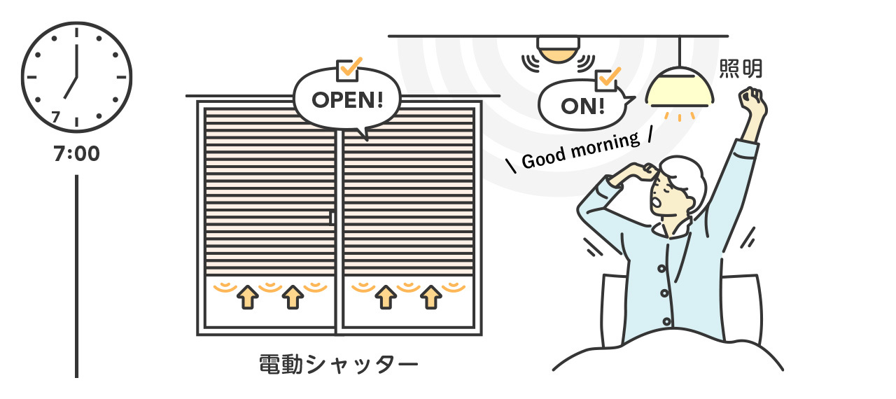 - 起きる時間に合わせて自動的に電動シャッターがオープン