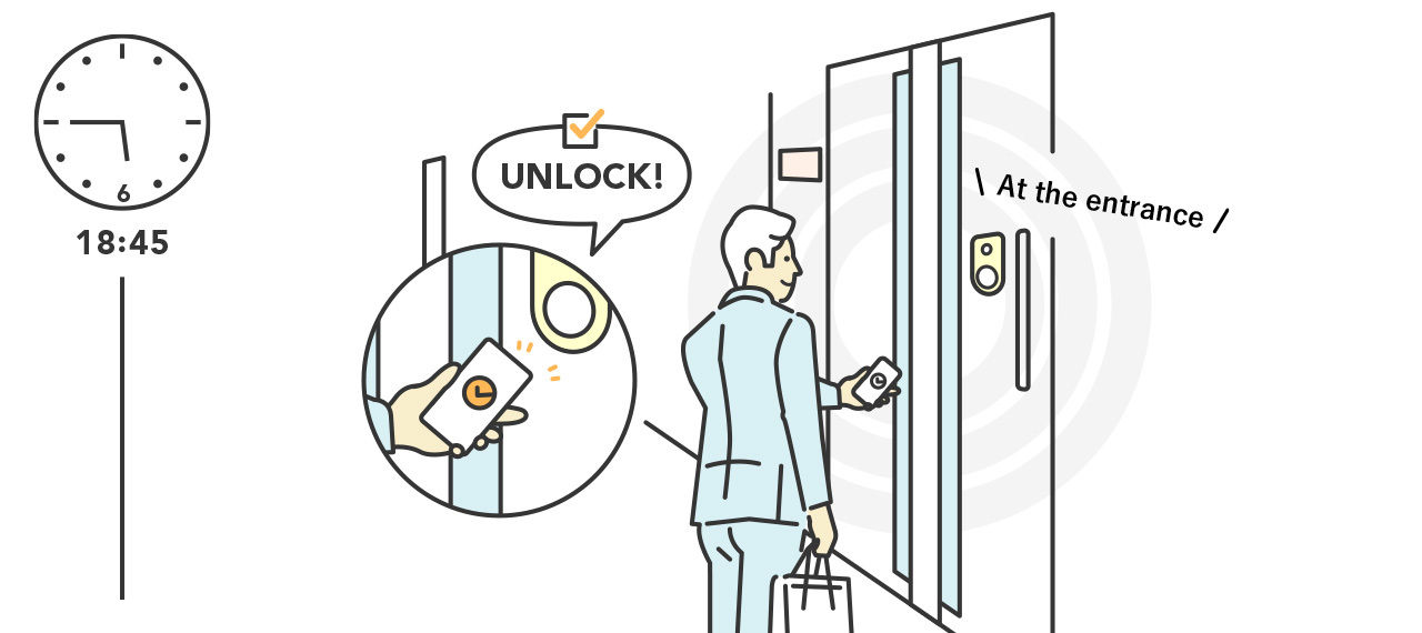 - エントランスも玄関、宅配ボックスも、スマートフォンやICカードをかざすだけで解錠できるので、ドアの前で物理鍵を探したり取り出したりする手間がなくなり、スムーズに