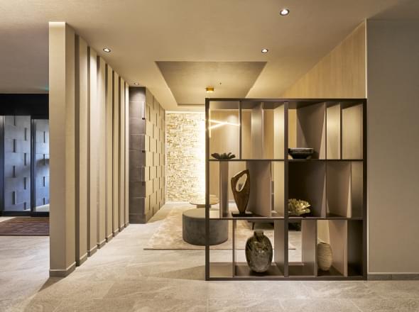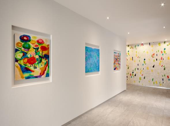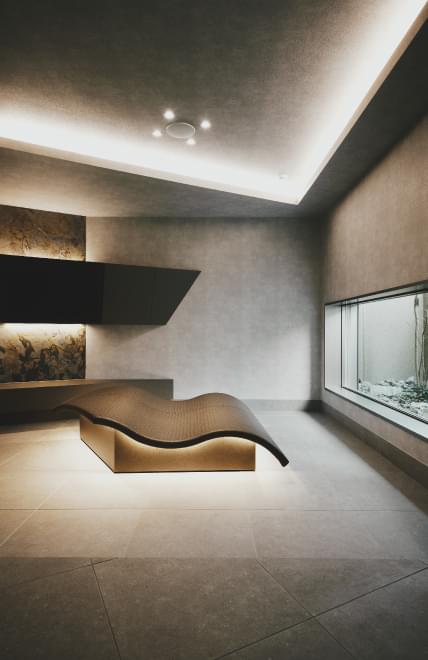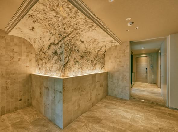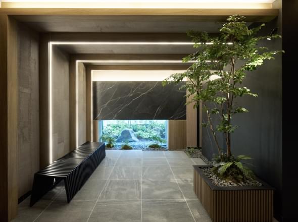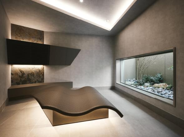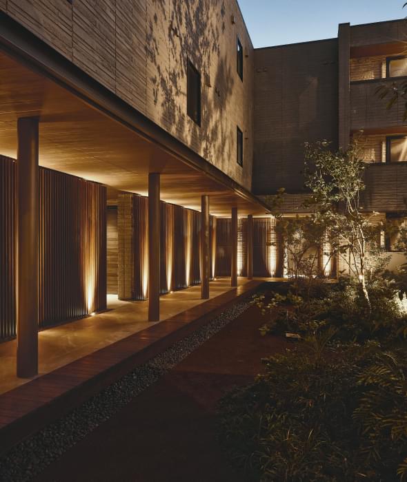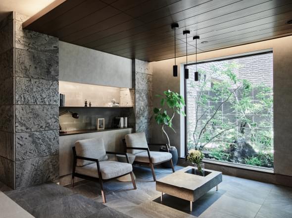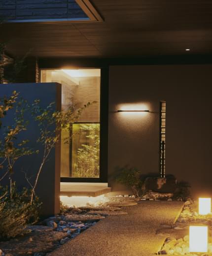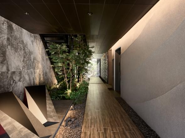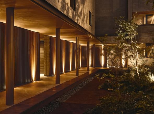 その動線の中で目に映る外観や中庭の夜景、こだわり抜かれたアートやインテリアに囲まれたプライベート空間。