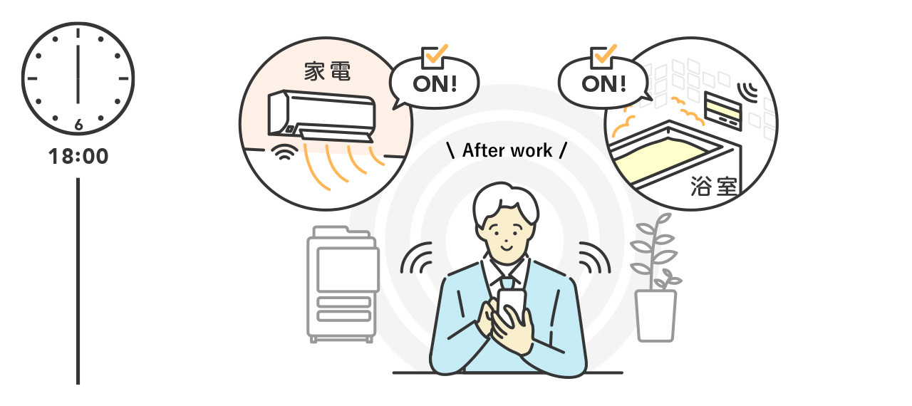 - 帰宅中の電車内からスマートフォンを使って、エアコンの操作が可能です。